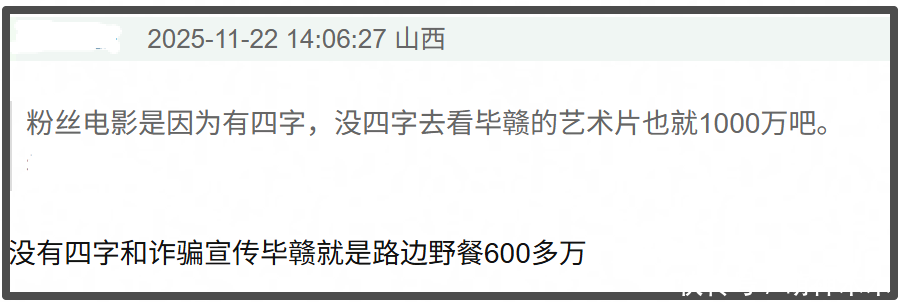 定位为文艺片的电影,在预售已经突破一亿票房的情况下,票房最终落点仅仅2亿,这样的票房结构是否意味着该片可以被称为是粉丝电影?上映前,粉丝冲着偶像冲预售票房;上映后,粉丝为了偶像走进电影院,继续为偶像“氪金”。有网友大胆推测,如果该片的主演不是易烊千玺的话,那么票房可能连一千万都突破不了。