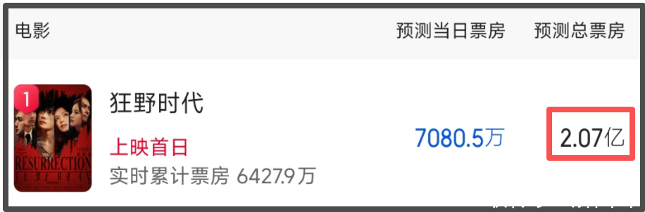 值得一提的是,《狂野时代》在上映之前就取得了不错的预售成绩。该片在上映前预售票房就已经突破了一亿大关。但是,影片上映之后,从首波观众反馈和预测总票房上就能够看出,该片票房上不会再有太大涨幅了,最终票房成绩也就大概在2亿左右了。