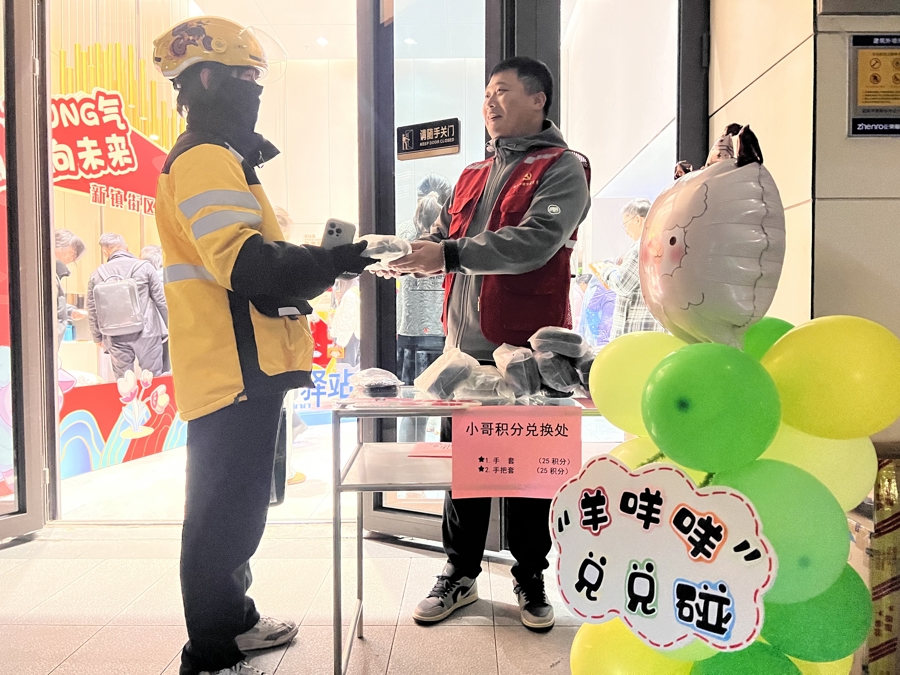 逛玩之余,“羊咩咩”美食区为参与者补充能量。集满印章即可兑换喷香羊肉串,正荣物业免费提供的爆米花香甜酥脆,青春小店的热饮驱散寒意。活动还特别设置“羊咩咩”兑兑碰环节,向新就业群体送上关怀。新就业群体只要亮明身份或出示“智汇卫城”积分,即可免费领取暖“羊”护手套一副,在寒冷冬日收获一份暖心守护。不少外卖小哥感慨:“这样的活动让我们感受到街区的温度与活力,也体会到了被关心的幸福。”