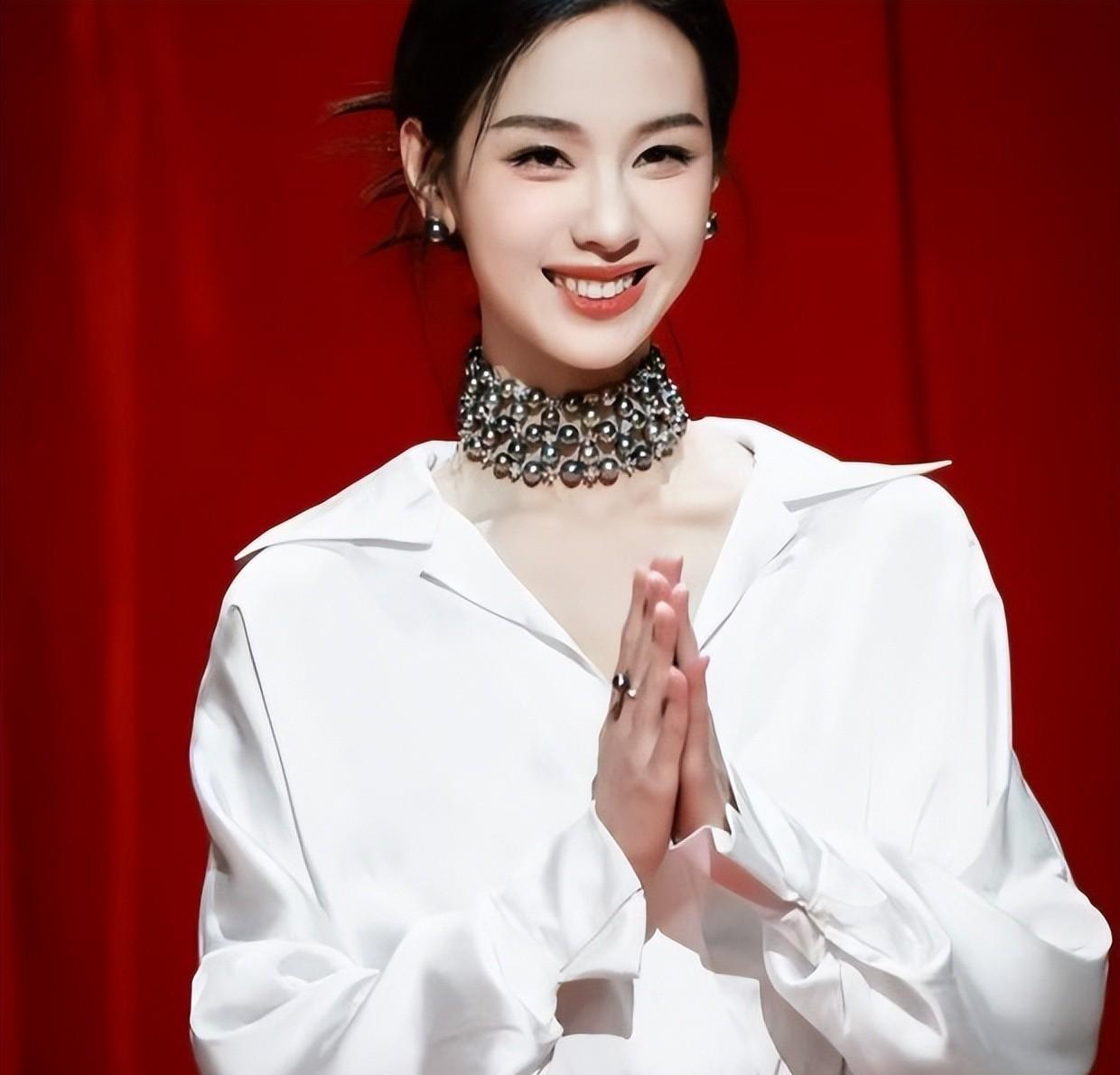 反观陈都灵,白色素雅的长裙,加上贵气十足的珠宝,让她整个人看起来优雅大方。